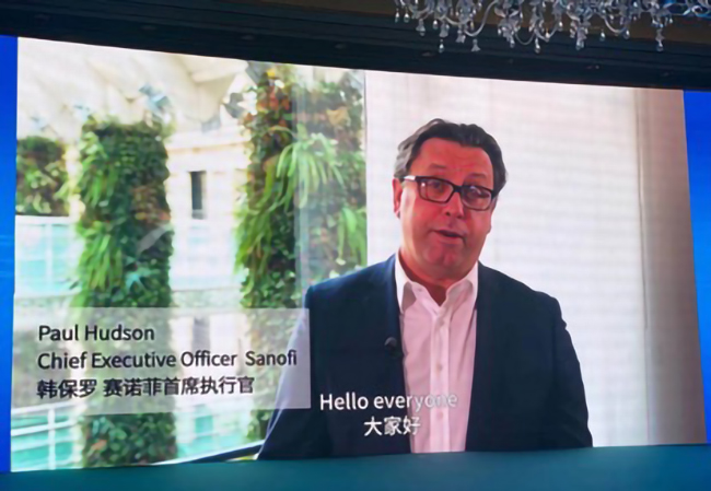 法国赛诺菲集团首席执行官韩保罗发表视频演讲