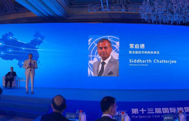 联合国驻华机构协调员常启德在演讲中分享了一个疫情严重时期的小故事:“我来自肯尼亚,在2020年的3月,我乘坐一家埃塞俄比亚航空的飞机从中国带来了许多的个人防护物资,这样的飞机也到达了非洲的各个国家,我要特别感谢中国在过去一年所对于非洲国家展现出的这种支持。”