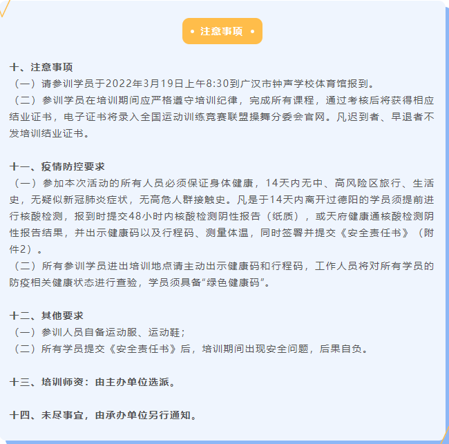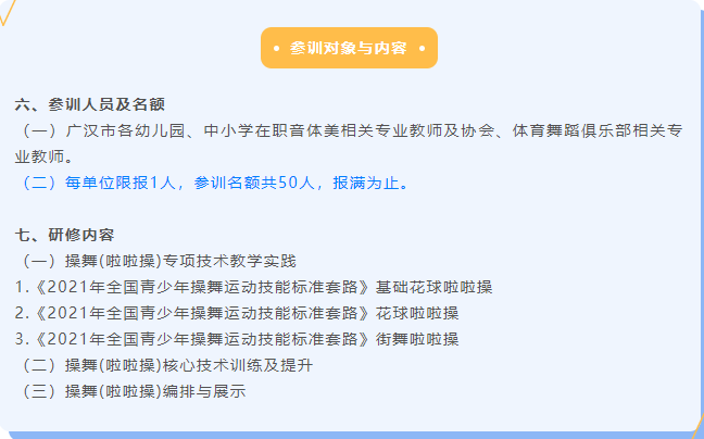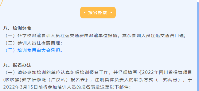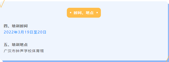 经研究,决定于2022年3月19日至3月20日于四川省广汉市钟声学校举办2022年四川省操舞项目(啦啦操)教学研修班(广汉站)。此次培训为公益培训。