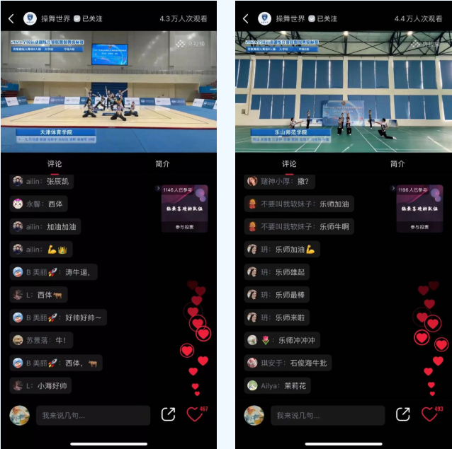 在操舞分委会与中央广播电视台第五频道达成战略合作契机下,大赛均通过权威媒体“央视频·操舞世界”平台进行独家直播与实时投票。2021年操舞锦标赛直播实时观看人次累计突破15万,近万名观众参与人气队伍投票,在参赛单位与社会大众中引发热烈反响。