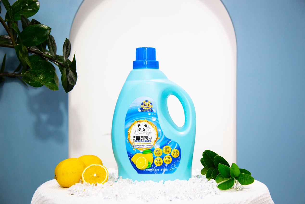 公司创始人贾正积,更是以“打造全球最好的清洁用品”为品牌目标,此次洁派怀揣感恩,为大家带来了洁派洗衣液。环保问题被全球人民所关注,一直在探索解决方案,同样也是洁派全体科研人员努力执着的方向,在经过不间断的反复试验,发现酵素因子与清洁因子结合产生更强清洁能力。经过上千次配方研发,尽力减少化学成分,确定了产品成为“复合酵素、椰子油衍生物、多种活性洁净成分、抑菌剂、除螨剂、柠檬香氛”净含量3KG的洗衣液,由于采用复合酵素,我们建议的贮藏条件:请置于阴凉干燥处避免阳光直射,这样可有效的避免酵素活性丢失,时刻保持高效清洁能力。