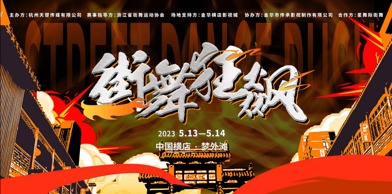 5月13日到5月14日主办方将在金华横店影视城梦外滩举办首届金华站街舞比赛,旨在为中国街舞爱好者提供一个展现才华、切磋交流的平台,推广街舞文化,从而推动街舞事业的发展。