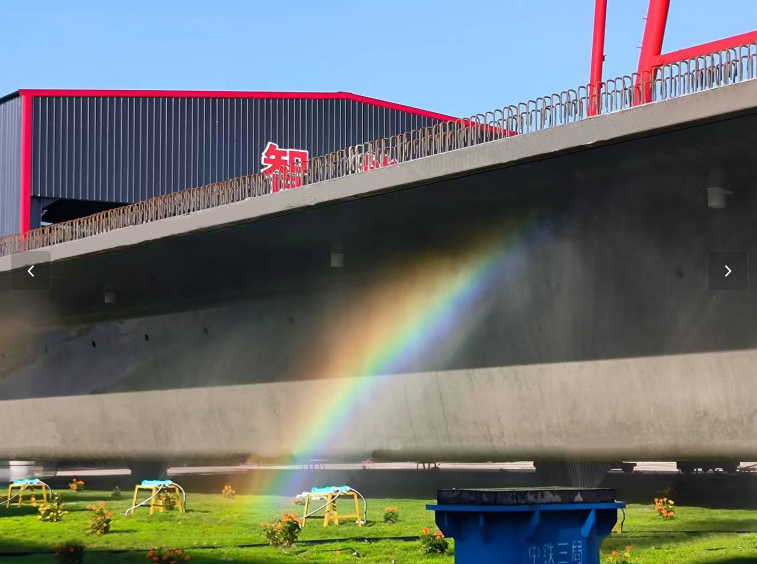 同时,梁场积极将“四新”技术融入到制梁作业中,推广应用移动钢筋绑扎胎具、接触网基础组拼工装及智能张拉压浆一体化台车等工装设备,引入循环水喷淋养护系统、光伏发电设施,在提升制梁质量和效率的同时,实现了绿色低碳、文明施工,圆满完成全部制梁任务。