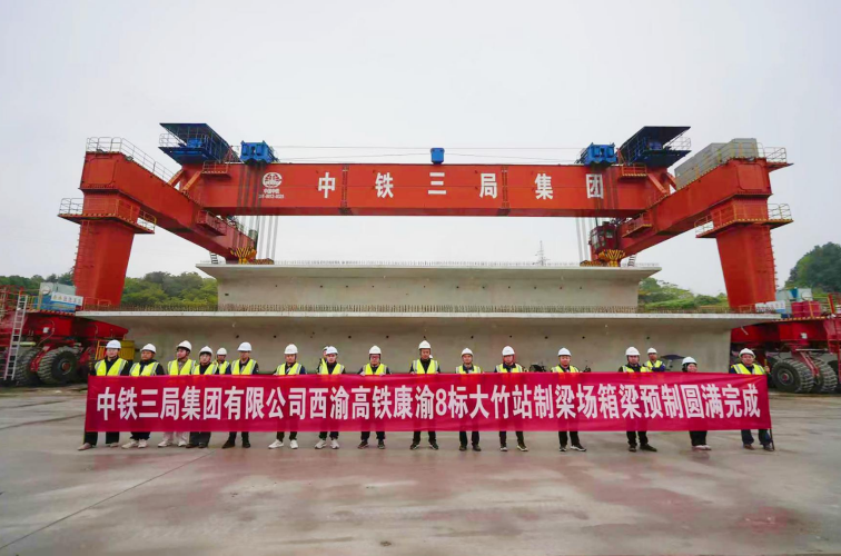 11月15日凌晨0点16分,西渝高铁康渝段站前八标大竹站制梁场最后一孔箱梁成功浇筑,在全线率先完成管段箱梁预制任务,为后续架梁及铺轨施工奠定了坚实基础。