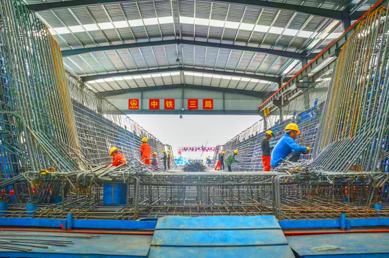 在箱梁预制过程中,项目梁场引进智能钢筋加工设备及配套控制系统,对钢筋来料、排产、加工、余料计算等环节全程自动分析,通过“BIM+AI”数智融合实现对下料方案、材料用量的动态优化,并借助数控系统与传感器对钢筋剪切实时校准,剪切精度控制在±1.5毫米以内。同时,项目部借助智能指挥中心与信息化管理平台,对原材料进场、钢筋加工、模板安装等关键工序实时监控,实现了梁场全生命周期精细化管理。